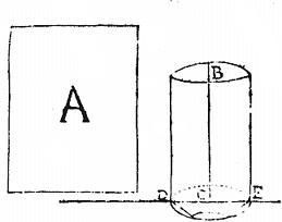 Item, quoniam circum axem BC construi possunt infinitae columnae lateratae, quarum superficies laterales singulae maiores sint superficiei A: tales autem superficies minores sunt superficiebus cylindricis, quibus inscribuntur, per primam huius; ideo, et infinitae superficies cylindricae circum axem BC locari queunt singulae maiores data superficie A: erit itaque in linea DE aliquis terminus, intra quem cylindricae superficies sint minores singulae superficie A, et extra quem sint maiores: esto talis terminus punctum D, eritque per primam, et tertiam ex dictis superficiebus cylindricis, quaecunque intra terminum D consistit, minor superficie cylindrica, cuius semidiameter basis CD; quaecunque autem extra terminum D maior eadem: cum itaque superficies data A, et superficies cylindrica, cuius basis semidiameter CD, axisque BC collatae ad omnem aliam superficiem, intra extraque punctum D sint ea simul maiores, aut simul minores: iam per ultimum postulatum aequales erunt. Constat ergo propositum.